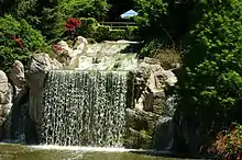 - Sunken Garden- The Sunken Garden features a 10-meter high waterfall with a pergola on top as well as a display of evergreen and deciduous trees, shrubs, flowers and pathways surrounded with hundreds of roses.[11]