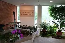 The C. Fred Edwards Conservatory was opened in 1996 and was the gift of local philanthropist, Joan C. Edwards. It is the only tropical and subtropical plant conservatory in West Virginia and the tri-state region. In addition to plants, the conservatory features many animals, including koi (colored varieties of the Amur carp), poison dart frogs, axolotls and a saltwater aquarium featuring various types of corals and other aquatic animals. The plants featured in the conservatory fall under four primary categories: Orchids, Agriculturally Important, Fragrant, and Unusual.