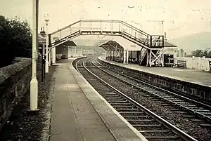 The original station building, which had an overall roof[3] and was described in 1898 as, "a decent structure of the old fashioned 'roofed-over' type",[4] was demolished and replaced in 1999 with a smaller ticket office (staffed part-time) and waiting room.