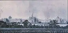 By 1897 the house had been rented to nearby Westgreen Asylum for the accommodation of 'the higher class of Private Patients' at an annual rent of £151.[60] In 1918 the Gray Estate was broken up and the house was sold to James Ogilvie, a Dundee mill owner, who occupied it until his death in 1936. During the Second World War it was made available by James Ogilvie's son to house boys and girls evacuated from the Dundee Orphanage.[61] Thereafter it was bought by Smedley's, a canned food company, who used part of it as a storage barn for soft fruit farming and the servant quarters as accommodation for workers.[62] By the mid-1970s it was in an advanced state of disrepair. Between 1978 and 1995 there were two attempts at restoration; neither was completed. As of 2015 the house is largely wind- and water-tight but is on the Buildings at Risk Register for Scotland.[63]