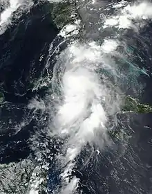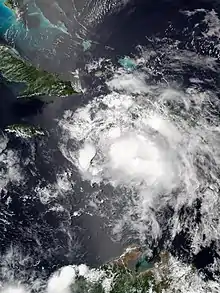 A Tropical Storm Watch was put in effect for the southern and western coasts of Haiti from the Dominican Republic–Haiti border to Môle-Saint-Nicolas at 21:00 UTC on July 1.[83] A few hours later, a Tropical Storm Watch was ordered for the Dominican Republic from the border with Haiti eastward to Punta Palenque, as well as the entire island of Jamaica.[84] By 9:00 UTC the next day, the watch in the Dominican Republic was upgraded into a Tropical Storm Warning from Cape Engaño to the Haitian border. The Tropical Storm Warning further extended through all of Haiti, and a Hurricane Watch was posted from the international border to the national capital of Port-au-Prince.[85] Six hours later, the Hurricane Watch in Haiti was upgraded to a Hurricane Warning, with a Hurricane Watch being issued for Jamaica as well as the Dominican Republic from the international border to Punta Palenque. Also in the Dominican Republic, a Tropical Storm Watch was put in place from Cape Engaño to Bahia de Manzanillo on the northern coast of the country.[86] At around 18:00 UTC, a Tropical Storm Watch was issued for the Cayman Islands.[87] Then, by 21:00 UTC on the same day, a Hurricane Warning was issued for Jamaica, and a Hurricane Watch was issued for the Cuban provinces of Camaguey, Granma, Guantanamo, Holguin, Las Tunas, and Santiago de Cuba.[88] The Hurricane Warning in Jamaica was downgraded to a Tropical Storm Warning, and the Tropical Storm Watch in Cuba was upgraded to a warning, with a new watch extending to Ciego de Avila, Sancti Spiritus, Villa Clara, Cienfuegos, and Matanzas provinces, at 15:00 UTC on July 3.[89] About six hours later, the remaining Tropical Storm Watch in Cuba was once again upgraded to a warning with Mayabeque Province and Havana being placed under a Tropical Storm Watch.[90] Early on July 4, the Hurricane Warning in Haiti was downgraded to a Tropical Storm Warning and the previous Tropical Storm Warning in place north of Port-au-Prince was cancelled.[91]