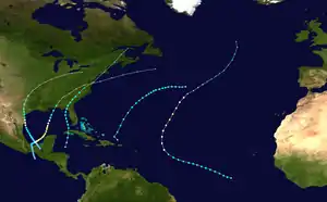The season's activity was reflected with an accumulated cyclone energy (ACE) rating of 28, the lowest value since 1890. ACE is a metric used to express the energy used by a tropical cyclone during its lifetime. Therefore, a storm with a longer duration will have high values of ACE. It is only calculated at six-hour increments in which specific tropical and subtropical systems are either at or above sustained wind speeds of 39 mph (63 km/h), which is the threshold for tropical storm intensity. Thus, tropical depressions are not included here.[1]