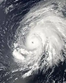 ![]() Hurricane Lorenzo shortly before peak intensity on 29 September | |