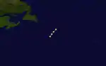 The first tropical cyclone of the season was observed on August 12, about 500 mi (800 km) southeast of Cape Race, Newfoundland. Its entire track was unknown, and its existence was only confirmed for 24 hours, based on three ship reports. The second, a barque, the Prinze Frederik Carl, sustained damage to all of its sails. The Hurricane Research Division (HRD) assessed the storm to have moved northeastward in its limited duration, and based on the ship reports estimated peak winds of 105 mph (165 km/h); this would make it a Category 2 hurricane on the modern-day Saffir-Simpson Hurricane Scale.[2][4]