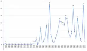 The phrase first appeared in 1959 in the People's Daily, where it was used to criticise India following a border dispute.[1] In the decades that followed, the phrase has been regularly used to express displeasure of the Chinese government via its various official communication channels. Targets accused of having "hurt the feelings of the Chinese people" range from national governments and international organisations,[10] to companies such as automakers,[1] newspapers,[11] luxury jewellers,[12] and hotel chains,[13] in addition to outspoken individuals including sportspeople,[14] business executives,[15] film actors,[16] and music performers.[17] Although bureaucratic in origin, ordinary people have also become encouraged to use the expression to display dissatisfaction against criticism targeting China as well.[18][19]