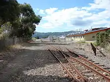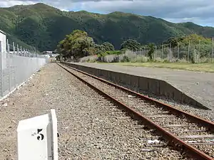 ![]() Hutt Park railway station, looking south. The platform now borders private land and the Hutt Valley Golf Course on the mothballed section of the Gracefield Branch line past the Hutt Workshops. | |