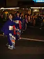 In the evening after the main parade there are Bon Festival dances starting from 19.00 h and ending late in the night. Employees from different companies wear different kimono, but anyone can join the dances. The traditional Japanese dance along the central street near Kohrinbo is a picturesque event, and the column of dancing people is several kilometers long.