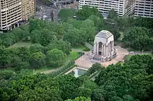 Part of the vision was to place major monuments at each end of the main vista aligned with Macquarie Street, which ultimately saw the Anzac Memorial and Archibald Fountain installed.[11][1]
