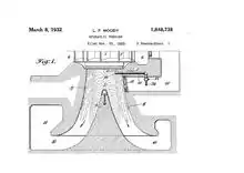 In the 1920s William M. White and Lewis Ferry Moody both patented bell-mouth draft tubes.[5][6] The salient feature of Moody's Spreading Draft Tube is the center cone, which distinguishes it from White's Hydraucone Draft Tube. The term Hydraucone is sometimes erroneously used as a general term for all bell mouth tubes. The pair debated over which device was more efficient, particularly in the presence of swirl as water leaves the turbine. This debate was superseded by the widespread introduction of the elbow-shaped draft tube which is less efficient but easier to construct, particularly on a large scale.