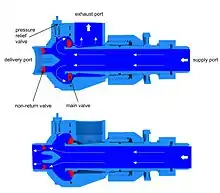 - NOTE: This pump claims to have no moving valves and uses high-pressure air, so it may actually be a pulser pump.