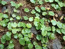 Hydrocotyle sibthorpioides is a small plant native to southeastern Asia. It is also referred to as lawn marshpennywort.[2] It is a dicot, traditionally placed in the family Apiaceae, but more recently suggested to belong in the Araliaceae.[3] It grows in great abundance when the conditions are right. Hydrocotyle sibthorpioides originated in southeastern Asia, but is slowly spreading in the United States, along with other places around the world. It can grow in a wide variety of habitats. This plant has been used for medicinal purposes in Asia and is also common in the aquarium trade.