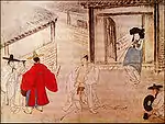 Playing tuho under the forest | 임하투호(林下投壺) | Tuhoo is a Korean traditional competing game similar to darts. Players draw an arrow into a vase. |