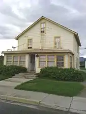 The Hyland Hotel, also known as the Everglenn Hotel, is a historic hotel building at 333 Evergreen Avenue in Palmer, Alaska. It is a 2+1⁄2-story wood-frame structure with a front-gable roof, and a glass-enclosed porch extending across its front. The building was enlarged to the rear and resided in 1953. It was one of the first buildings erected in Palmer after the town was established in 1935. Myles and Joanna Hyland built the hotel, digging the foundation themselves, and using lumber salvaged from a mining camp dormitory. The Hylands ran the hotel until their respective deaths (Myles in 1949, Joanna in 1966).[2]