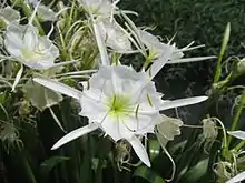 Hymenocallis coronaria, commonly known as the Cahaba lily, shoal lily, or shoals spider-lily, is an aquatic, perennial flowering plant species of the genus Hymenocallis. It is endemic to the Southeastern United States, being found only in Alabama, Georgia, South Carolina and parts of North Carolina.[2][3] Within Alabama, it is known as the Cahaba lily; elsewhere it is known as the Shoal lily or Shoals spider-lily.[4]