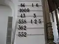 Hymn boards originated in the sixteenth century. Originally, the usual practice was to write the opening lines of the hymns on the board, but in the early eighteenth century, it became more common to refer to the hymns' numbers in the church's hymnal.[3]