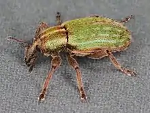 Hypera nigrirostris, commonly known as the lesser clover leaf weevil, is a species of weevil that is native to Europe and northern Africa and has been introduced to North America and Japan.[1] Both adults and larvae feed on red clover and other plants in the family Fabaceae.