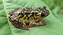 - IUCN SSC Amphibian Specialist Group (2016). "Hyperolius glandicolor". IUCN Red List of Threatened Species. 2016: e.T84384455A84384275. doi:10.2305/IUCN.UK.2016-1.RLTS.T84384455A84384275.en. Retrieved 16 November 2021.