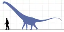 Hypselosaurus was a proposed to be 15 m (49 ft) in length, when it was considered a crocodilian, which would have made it one of the largest of the group.[8] However, a modern estimate as a titanosaur has put Hypselosaurus at around 12.0 m (39.4 ft), with a very rough weight estimate of 7.3–14.5 t (8–16 short tons).[9] One of the smaller titanosaurs, Neuquensaurus, measures only 7.5 m (25 ft) long.[10]
