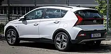 The Hyundai Bayon is a five-door subcompact crossover SUV produced by the South Korean manufacturer Hyundai. Revealed in March 2021, it is Hyundai's smallest SUV in their European line-up and slots below the Kona.[2][3] Designed for the European market, the vehicle's name is a reference to the French city of Bayonne.[4][5] The Bayon is based on the third-generation i20 and is not offered with all-wheel drive.[6]