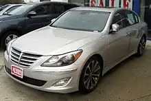 The Hyundai Genesis (Korean: 현대 제네시스) is an executive four-door, five passenger, rear or all-wheel-drive full-size luxury sedan manufactured and marketed by Hyundai. The Hyundai Genesis debuted in 2008 until Genesis spun off as a separate entity in 2017, rebadging the vehicle as the G80.[1] Introduced in concept form at the 2007 New York International Auto Show,[2] and internally designated as the BH model, the Genesis was expected to cost $533 million to develop.[3] Hyundai began marketing the first generation Genesis worldwide (except in Europe) in 2008 as a "premium sports sedan".[4] The second generation Genesis (model DH) debuted in Seoul, Korea in November 2013[5][6] followed by the 2014 North American International Auto Show[7] and Toronto Auto Show.[8] It is marketed worldwide. On 4 November 2015, Hyundai officially separated Genesis into its own luxury division, Genesis Motor.[9][10] The leap into a stand-alone, luxury brand came on the heels of marked success in the luxury market, paired with consumer demand for the Genesis name.[11]