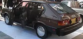 Trim levels were 'L' (standard), 'GL/CX', and 'GLS/CXL'. The 'CX/CXL' designations were for 1987 model years only. The L featured vinyl seats, a fold-down rear bench seat, and usually a four-speed manual transmission mated to a 1.4 litre inline-four engine. The GL/CX included vinyl-cloth seats, a standard clock (which was mounted in the instrument cluster for 1984-1986 models, and for 1987, a digital clock was added in the centre of the upper dash) rear wiper, passenger-side mirror, tinted glass, lockable fuel door, standard door guards, 50/50 fold-down seats, upgraded interior trim, and (from 1985) an available 1.6 litre engine. The GLS/CXL included the above with the option of a tachometer, passenger-side vanity mirror, full cloth seats, and (from 1985) a standard 1.6 L engine.