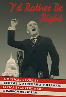 I'd Rather Be Right is a 1937 musical with a book by Moss Hart and George S. Kaufman, lyrics by Lorenz Hart, and music by Richard Rodgers. The story is a Depression-era political satire set in New York City about Washington politics and political figures such as President Franklin D. Roosevelt. The plot centers on Peggy Jones (Joy Hodges) and her boyfriend Phil (Austin Marshall), who needs a raise in order for them to get married. The President steps in and solves their dilemma.