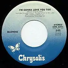 The biggest hit from Blondie's previous album, Plastic Letters, was "Denis", a cover of Randy & the Rainbows' 1963 song "Denise", so Chrysalis Records chose "I'm Gonna Love You Too" as the lead single to promote Blondie's Parallel Lines in the U.S. This turned out to be a miscalculation as "I'm Gonna Love You Too" failed to chart in the U.S. – a stark contrast to the subsequent breakthrough U.S. singles from Parallel Lines, namely "Hanging on the Telephone", "Heart of Glass and "One Way or Another". In The Netherlands, it was the first single from the album as well, being released in September 1978,[8] where it peaked at No. 6.[9] The song was eventually released as a single in a few other countries in late 1979 as the fifth or sixth single from Parallel Lines, after other songs from the album had completed their run in the charts.