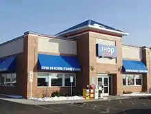 IHOP (US: /ˈaɪ.hɒp/ EYE-hop; acronym for International House of Pancakes) is an American multinational pancake house restaurant chain that specializes in American breakfast foods. It is owned by Dine Brands Global—a company formed after IHOP's purchase of Applebee's, with 99% of the restaurants run by independent franchisees.