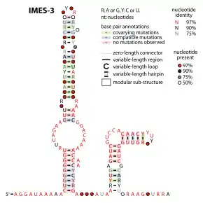 Consensus secondary structure of IMES-3 RNAs. This figure is adapted from supplementary data of a previous publication.[1]