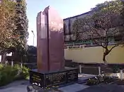 The INA Martyrs' Memorial complex is a war memorial at Moirang, India, dedicated to the soldiers of the Indian National Army. The main feature of the complex is a reconstruction of the INA's memorial to its fallen soldiers as it stood in Singapore, before its demolition at the hands of British Indian Army sappers in 1945. The complex also contains a museum dedicated to the INA along with a library and an auditorium and a statue of Subhas Chandra Bose. Work on the cenotaph itself began in October 1968 and was completed in September 1969, when it was unveiled by Indira Gandhi. Work on expanding the monument complex to present-day size was completed in 2005, when it was unveiled. The total cost in building the memorial was Rs 6.23 crores. A stone monument has also been erected at the historic Moirang Kangla, where Colonel S. A. Malik leading an INA unit raised the flag of Azad Hind in April 1944. The Imphal state government has administered the site since 1985. Close to the complex is the peace memorial at Lotpaching, raised by the Japanese government.