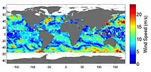 One of ISS-RapidScat's first observations was of Tropical Storm Simon off the coast of the Baja California Peninsula on 3 October 2014.[8] It also played a role in observing the Category 5 Hurricane Patricia in October 2015, which was noted as one of the most powerful hurricanes on record, with maximum sustained winds of 185 kn (343 km/h; 213 mph).[10][11] Data from ISS-RapidScat was disseminated worldwide for use in weather forecasting, and was used by the United States Navy, NOAA, and EUMETSAT, among others.[10]