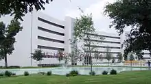 In its early years the Institute operated at Abasolo 858 Oriente in a large, two-story house located a block and a half away from Zaragoza Square, behind the city's Metropolitan Cathedral.[19] As these facilities soon proved to be insufficient, it started renting out adjacent buildings and by 1945 it became apparent that a university campus was necessary. For that reason, a master plan was commissioned to Enrique de la Mora and on February 3, 1947, what would later be known as its Monterrey Campus was inaugurated by Mexican President Miguel Alemán Valdés.[1]