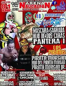 The IWRG 19th Anniversary Show was an annual professional wrestling major event produced by Mexican professional wrestling promotion International Wrestling Revolution Group (IWRG), which took place on January 1, 2015 in Arena Naucalpan, Naucalpan, State of Mexico, Mexico. The show commemorated the creation of the IWRG 19 years prior on January 1, 1996 when Adolfo "Pirata" Moreno took over running the wrestling in Arena Naucalpan and turned it into the IWRG.