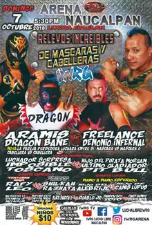 The IWRG Relevos Increíbles de Máscaras y Cabelleras (Spanish for "Incredible relays for Masks and Hair") show is a major lucha libre event produced and scripted by Mexican professional wrestling promotion International Wrestling Revolution Group (IWRG), that took place on October 7, 2018 in Arena Naucalpan, Naucalpan, State of Mexico, Mexico. The focal point of the event was a Relevos increíbles tag team match between the teams of Aramís/Dragón Bane and Demonio Infernal/Freelance. The first two wrestlers pinned in the tag team match would then face off against each other in a traditional Lucha de Apuestas ("bet match"), risking either their wrestling mask or their hair on the outcome of the match. The show ended with Demonio Infernal pinning Freelance, forcing Freelance to have all his hair shaved off afterward. The Relevos Increíbles de Máscaras y Cabelleras show featured six additional matches.