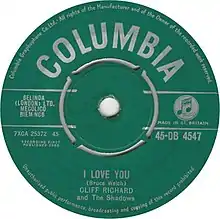 "I Love You" is the fourth UK number-one hit single (and the second of the 1960s) by Cliff Richard and the Shadows. It was written by the Shadows' rhythm guitarist Bruce Welch.[2] Released in November 1960, it was a Christmas No. 1 and stayed at the chart summit for two weeks,[2] although it did not carry a traditional holiday theme. The song also reached No. 1 in New Zealand.[3]