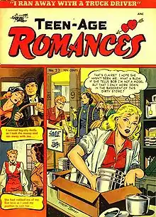 "I Ran Away with a Truck Driver" is a 9-page romance comics story published in Teen-Age Romances, No. 23 by St. John Publishing in August 1952 with art (and possibly script) by Matt Baker. The story tells of a small town girl rebelling against parents who want to send her to a girls' college. She would rather attend a coed school. However, she runs away to Chicago with a handsome young truck driver who promises her thrills galore. He steals her money and abandons her in the city. Disillusioned, she returns to her parents, abides by their wishes, and enters a wholesome relationship with a decent local boy. Like many other tales from the romance comics, "I Ran Away with a Truck Driver" depicts the suffering undergone by a young woman who believes she wants thrills but, disillusioned, returns to the quiet life. The story reiterated traditional male perspectives on female behavior.