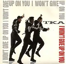 "I Won't Give Up on You" is a song by the group TKA from their 1990 second album Louder Than Love. The song was released in July 1990 as the second single from the album by Tommy Boy Records. It was written by Stephen Lironi and Dan Navarro and produced by Joey Gardner.