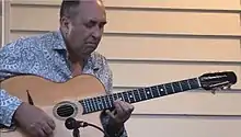 Ian Date (born c. 1960) is an Australian acoustic and electric guitarist most associated with the Gypsy jazz and bebop genres. He achieved success in the 1980s in the band Sweet Atmosphere co-led with Australian violinist George Washingmachine, playing repertoire of the 1930s and 1940s. He also plays banjo, trumpet. Jazz Ramble states, "(Ian) has played all over the world, has made numerous television, radio, festival and concert performances, and is regarded as one of Australia's great guitar players."[1]