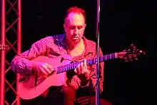 Since 2002 he has been resident in County Cork, Ireland where he lives with his wife Ilse de Ziah, a solo cellist, and their two children, and tours within Ireland, Europe and further afield including at least one return visit to Australia each year. Ian's acoustic guitar (and occasional banjo) repertoire is based firmly on music of the jazz era from the 1920s onwards, with a particular affinity for the virtuoso gypsy jazz style, with excursions to 1950s material and later, and also to elements of classical guitar and world music genres; when playing electric jazz guitar he favours a bebop style owing its origins to the playing of Charlie Christian, Barney Kessel and their successors. In concert, Ian also features his own vocals and trumpet playing, the latter developed mostly over the last 10 years or so.[3][4]