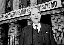 From 1982, Conservative policy began to move towards a more flexible position on Northern Ireland. In November 1985, Gow was persuaded by the speeches his cousin Nicholas Budgen made to resign as Minister of State in HM Treasury over the signing of the Anglo-Irish Agreement.[16][17] Despite his disagreement with government policy, he used his resignation speech to underline his personal devotion to Thatcher, describing her as "the finest chief, the most resolute leader, the kindest friend that any member of this House could hope to serve."[18] The Anglo-Irish Agreement would ultimately lead to devolved government for Northern Ireland, power sharing in the province and engagement with the Republic. After his resignation from the government, Gow became chairman of the parliamentary Conservative backbench committee on Northern Ireland. He was a leading opponent of any compromise with republicans and his tactics in this regard caused concern to the Northern Ireland Secretary Jim Prior and other MPs. According to The Guardian: "He [Gow] co-ordinated the Tory backbench opposition to Mr Prior's Northern Ireland Assembly bill in the early 1980s. His activities were said to have startled other Tory MPs and led to a complaint from an enraged Mr Prior to Mrs Thatcher."[19]