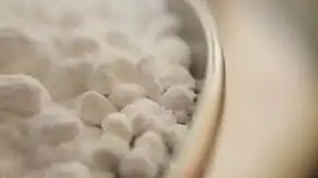 Powdered Sugar, also called confectioners' sugar, 10X sugar or icing sugar, is a finely ground sugar produced by milling granulated sugar into a powdered state. It usually contains between 2% and 5% of an anti-caking agent such as corn starch, potato starch or tricalcium phosphate[1][2] to absorb moisture, prevent clumping, and improve flow. Although most often produced in a factory, a proxy for powdered sugar can be made by processing ordinary granulated sugar in a coffee grinder, or by crushing it by hand in a mortar and pestle.