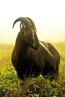 Eravikulam is another wildlife sanctuary proclaimed as a National Park. It supports the largest population of Nilgiri tahr in the world. Anamudi peak is on the southern part of this park. Most of the park is grassland and the average altitude is more than 5000 feet above sea level. Heavy rain and gushing winds make the area inaccessible during the monsoon season. The famous Neelakurinji (Strobilanthes kunthiana) grows here. It has a flowering cycle of 12 years.[22] Twenty-six species of mammals have been recorded in the park including the largest surviving population of Nilgiri tahr,[23] estimated at 750 individuals. The other ungulates are gaur, Indian muntjac and sambar deer. Golden jackal, jungle cat, wild dog, dhole, leopard and tiger are the main predators. Some little-known animals such as Nilgiri langur, stripe-necked mongoose, Indian porcupine, Nilgiri marten, small clawed otter, ruddy mongoose, and dusky palm squirrel are also found.[24] Elephants make seasonal visits.