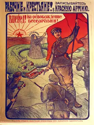 Cecan Sr's collaboration with the Red Army and the Ukrainian Soviet Socialist Republic had begun some two months later, when he proceeded to recruit Bessarabians exiles to fight as partisans behind Romanian lines in the Ukrainian civil war. Though he was largely successful in organizing a detachment, he was placed under surveillance by the city's Special Department, and twice arrested as a "counterrevolutionary".[33] In mid 1919, Cecan was recruited by the Red Army in its clashes with the UNR, and joined the Odessa riflemen commanded by a Jewish mobster, Mishka Yaponchik. He saw action against the Ukrainian People's Army, including outside Voznesensk on the Southern Bug, where Yaponchik was killed. One hostile report suggests that Cecan fled the battle; according to Șornikov, this cannot be accurate, as all deserters, including Yaponchik, had been massacred on the spot by the Cheka.[34]