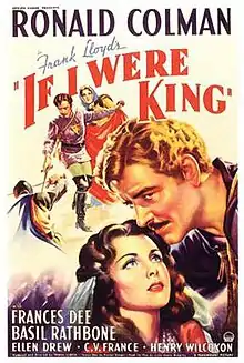 If I Were King is a 1938 American biographical and historical film starring Ronald Colman as medieval poet François Villon, and featuring Basil Rathbone and Frances Dee. It is based on the 1901 play and novel, both of the same name, by Justin Huntly McCarthy, and was directed by Frank Lloyd, with a screenplay adaptation by Preston Sturges.