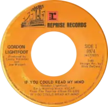 "If You Could Read My Mind" is a song by Canadian singer-songwriter Gordon Lightfoot. The lyrics were written when Lightfoot was reflecting upon his own divorce. It reached No. 1 on the Canadian Singles Chart on commercial release in 1970 and charted in several other countries on international release in 1971.[1]