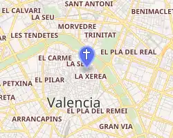 According to one legend the site was that of an old Roman temple dedicated to Hercules. San Esteban was the notaries' church. St. Vincent Ferrer (1350–1419) and St. Luis Bertrán (1526–1581) were baptized here.[1]