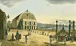 The Coliseum was the first building erected in Havana to provide theatrical performances, it opened its doors on January 20, 1775. It was located in front of the Alameda de Paula between Calles Acosta, Oficios, and Luz, in Old Havana. Built between 1773 and 1775, the initiative for the creation of the theater came from the Marquis de la Torre, who managed to gather on July 2, 1773, the most important merchants and the main personalities of the city with the aim of raising funds for the construction of the building. Shortly after, work began on the masonry and wood building, directed by the Havana architect Antonio Fernández de Trebejos y Zaldívar; in the year 1775, it was announced that on the 20th of that current month, the performance of comedies would begin in the new Coliseum.[5]