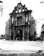 An example of the pre-Churrigueresque Baroque style, the floor plan of the Iglesia de San Francisco de Paula is typologically similar to the Iglesia de San Francisco de Asís as both ground plans are based on a Latin cross. The façade has a central arched doorway and columns at the sides, typical of Spanish churches. There is a belfry in the front, but the 3 bells were never be recovered after the hurricane of 1730. The Office of the City Historian restored the stained glass windows.[4]