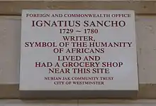 - City Council of Westminster. "Foreign & Commonwealth Office and King Charles Street and Ignatius Sancho". Audio Guide to the Road to Abolition Trail. Archived from the original on 28 December 2013. Retrieved 10 January 2013.