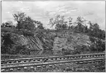 With the onset of the Civil War, the demand for slate dropped off sharply, as did the available workforce. To compound the problem, the B&O railroad ran an injunction against the local quarry owners for undermining their tracks. These two factors led to the closing many of the town's quarries in 1870. An outside mining company, the Maine Co., attempted to start a mine in Ijamsville but gave up by 1874.[4] Christopher Riggs, a carpenter, then owned and operated the only remaining slate mine, which produced only powdered slate (used as a fertilizer base, a purple dye for paint, or in vitrified bricks).[3] The town shrunk considerably with the end of its mining industry; the 1880 census listed only 71 residents.[12][17]